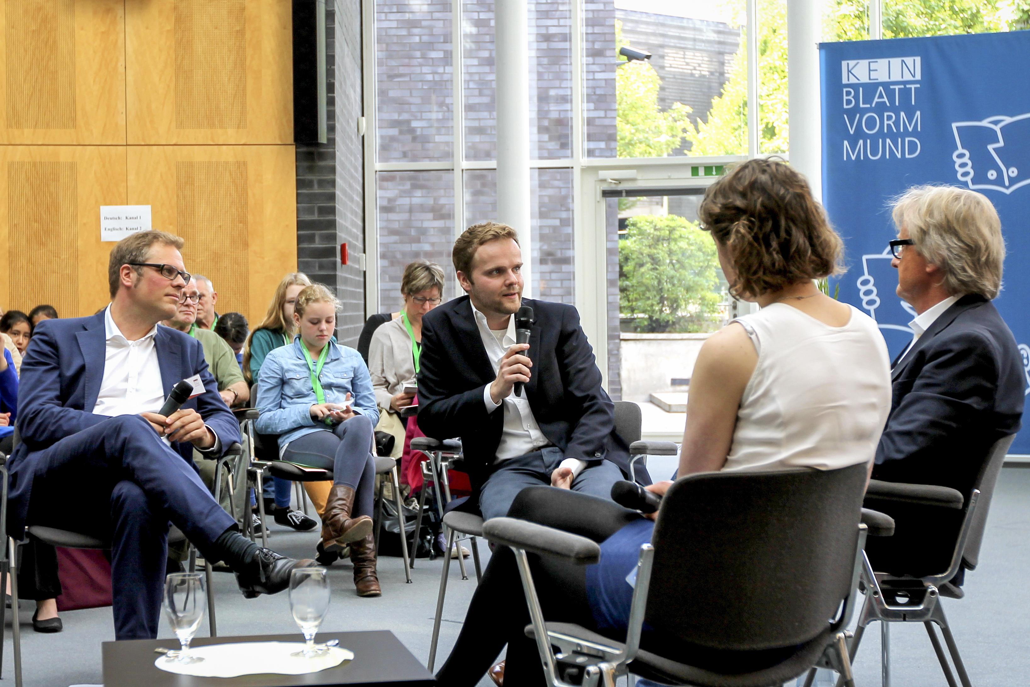 {{Information |Beschreibung = SZ-Kongress im Rahmen der Preisverleihung des Schülerzeitungswettberwerbs der Länder 2014 im Bundesrat, Berlin. vlnr: Dr. Kai Behrens (Pressesprecher AOK-Bundesverband), Benjamin Stöwe (Moderator), Hans-Ulrich J…