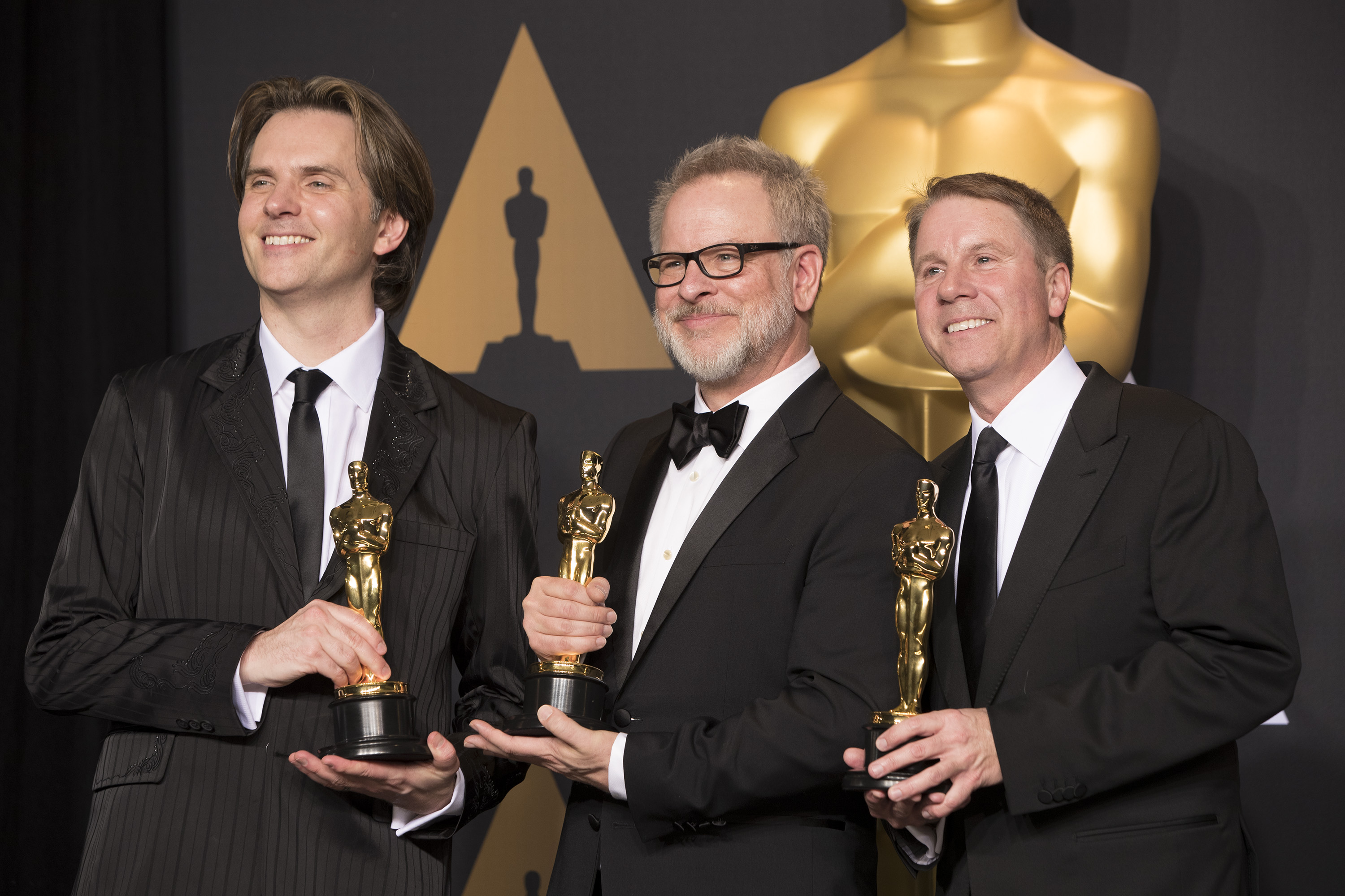 Beschreibung: Byron Howard, Rich Moore und Clark Spencer bei der Oscarverleihung 2017